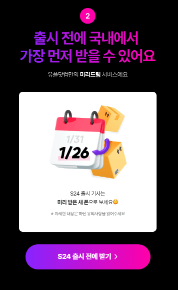 | 갤럭시 S24 사전 예약 혜택(사은품 포함) 신청 바로가기 (0) | 2024.01.20 |