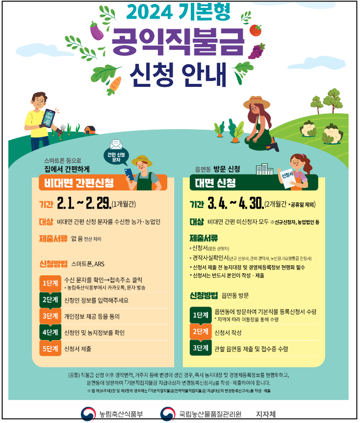 2024년 2월 1일부터 4월 30일까지 진행하는 공익직불금 신청자격에 대해 자세히 알아보겠습니다.