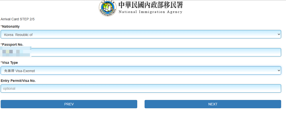 국적, 여권번호는 순서대로 입력하시고 비자타입은 대부분 관광 무비자이니 비자면제 VISA-exempt 선택을 하시면 됩니다. *표시만 입력합니다.