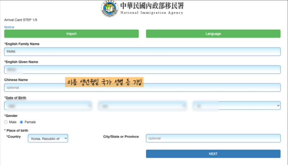 대만 e-GATE 온라인 입국 신고서 작성 시 모두 영어로 작성하시면 됩니다.
