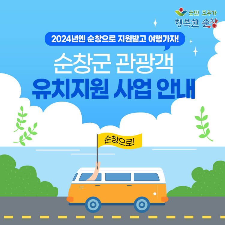 순창군에서는 2024년을 맞아 순창 여행을 계획하고 있는 관광객을 대상으로 다양한 여행 경비 지원사업을 운영하고 있는데요. 오늘은 '순창군 관광객 지원유치지원 사업'의 지원 내용과 신청 방법에 대해 알아보겠습니다. 예산소진시까지 선착순으로 모집하고 있으니 순창으로 여행 계획하고 계신 분들은 신청을 서두르시기 바랍니다.