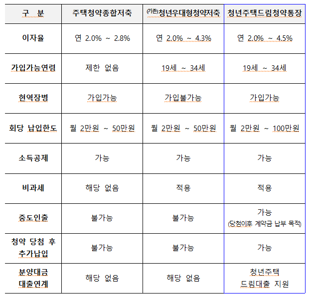 | 분류 | 기존청년 우대형 혜택 | 청년주택드림 청약통장 혜택 |