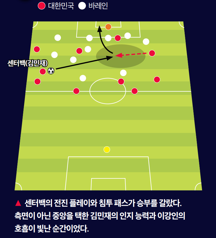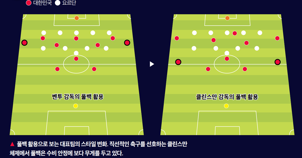 클린스만 감독은 지난 호주전과 비교해 2자리가 바뀐 선발 라인업을 꺼내들었다. 우선 경고 누적으로 이번 경기 출전이 불가한 김민재(뮌헨)를 대신해 정승현(울산HD)이 김영권(울산HD)의 중앙 수비 파트너로 나선다. 또 조규성(미트윌란)이 벤치로 내려가고 이재성(마인츠)이 선발로 복귀했다. 주장 손흥민(토트넘)을 비롯해 이강인(파리생제르맹), 황희찬(울버햄튼), 황인범(즈베즈다) 등 주축 선수들도 어김없이 선발로 그라운드를 누빈다.